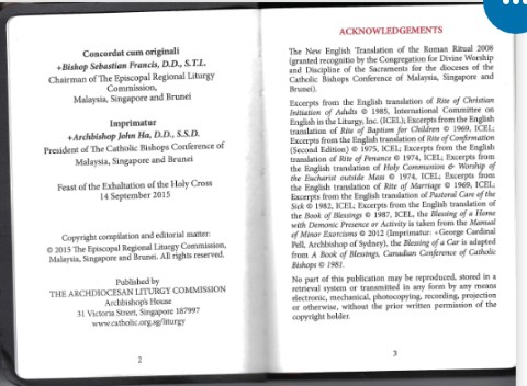 - Copyright compilation and editorial matter : 2015 The Episcopal Regional Liturgy Commission (ERLC), Malaysia, Singapore and Brunei. All rights reserved.